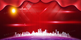 红色城市绚丽吃货大作战海报背景素材