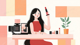 网红女主播现直播间介绍化妆品背景