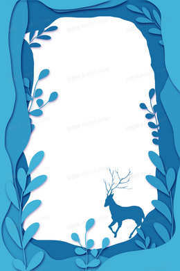 唯美矢量蓝色森林植物鹿剪纸背景