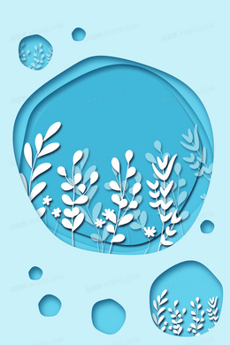 小清新蓝色剪纸装饰背景