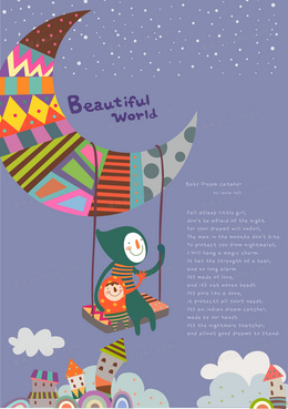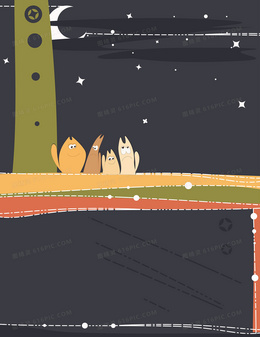 矢量夜晚卡通儿童插画背景