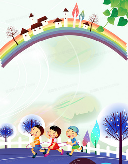 卡通小孩彩虹淡绿色背景素材