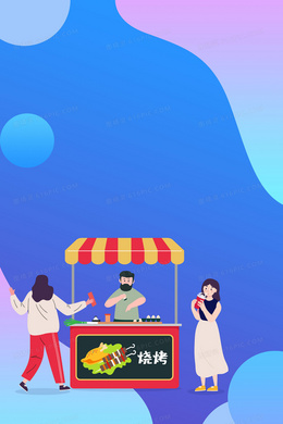 > 简约大气手绘扁平卡通地摊经济摆摊摊位背景