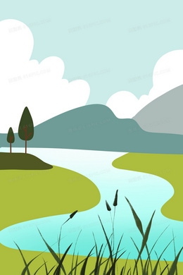 > 蓝色绿色夏日草原剪纸插画手绘背景