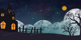 灰色夜晚万圣节诡异气氛插画手绘背景素材