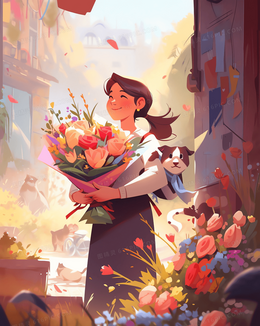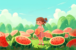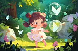 > 小女孩开心的看着白色蝴蝶精灵插画