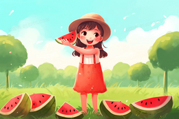 卡通风炎炎夏日一个小女孩开心的躺在游泳圈上插画