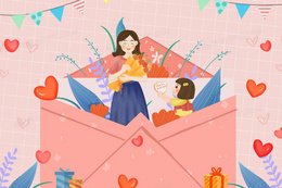 学生送爱心给老师贺卡手绘插画