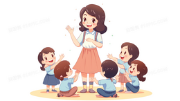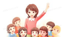 与学生们上课互动的老师插画