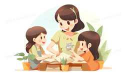 带领学生在教室外上课阅读的老师插画