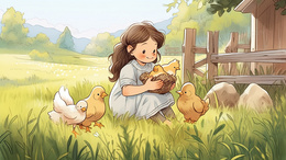 3D卡通身着古风服装的妈妈头戴鲜花抱着女孩插画