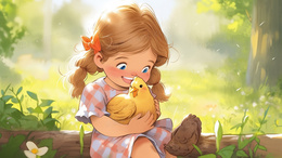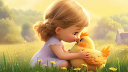 3D卡通风妈妈手捧郁金香抱着女孩插画