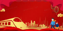 中式春节剪纸喜气过年灯笼烟花大红海报背景