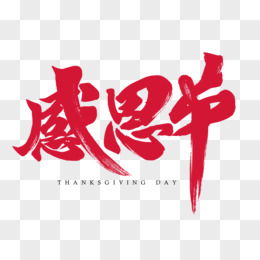 红色创意毛笔艺术字感恩节