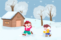 小雪节气孩子户外玩耍插画