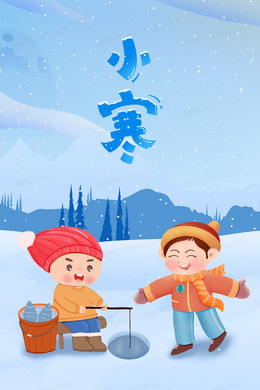 小寒节气孩子户外垂钓插画