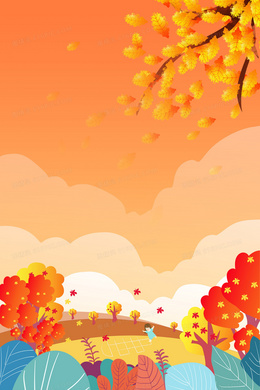 手绘卡通秋天插画风格秋天立秋背景