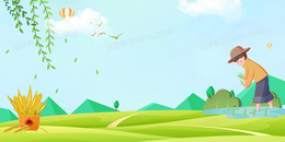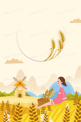 简约扁平化二十四节气芒种丰收麦穗麦田背景