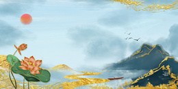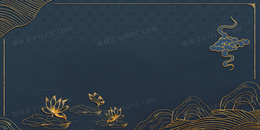 > 蓝金新中式荷花经典蓝大气中国风背景