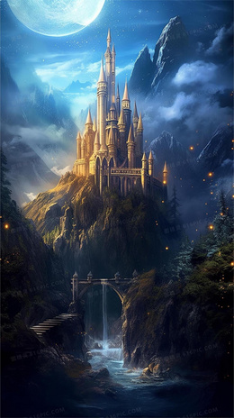 夜空下神秘的山顶城堡