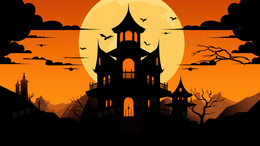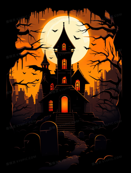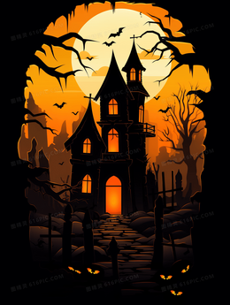 万圣节卡通城堡神秘鬼怪插画