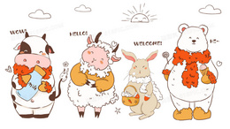 可爱简笔画小动物墙纸卡通原创插画图