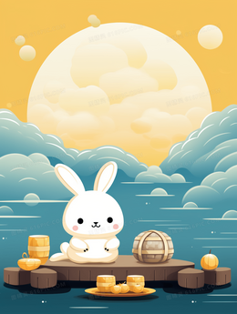中秋节圆月下的玉兔中国风插画