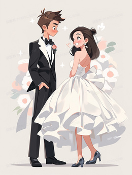 当前位置: 图精灵 > 背景图库 > 插画 > 穿婚纱即将结婚的小情侣插画