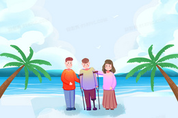 助残海边帮助残疾人插画