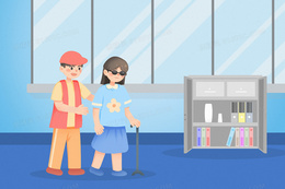 > 关爱残疾人助残插画