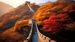 > 秋季中国长城风景插画
