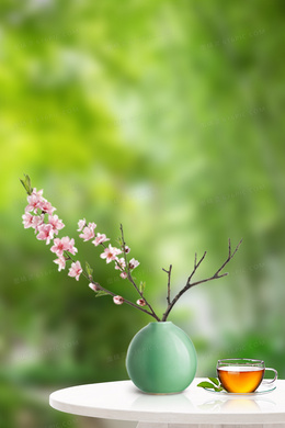 绿色文艺清新花瓶绿植背景