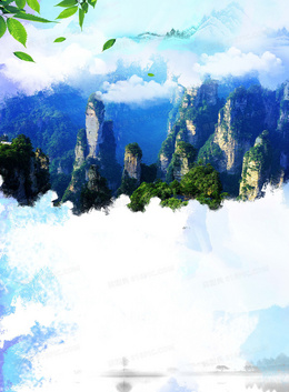蓝色清爽海岛海滨城市旅游海报背景素材