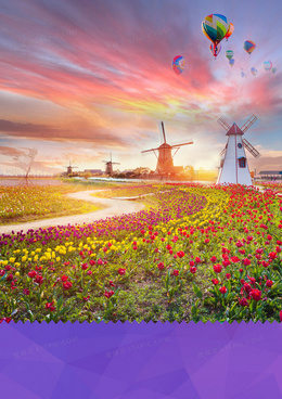 畅游欧洲荷兰郁金香旅游海报背景模板