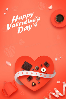 > 情人节巧克力礼物浪漫玫瑰花卡片祝福背景