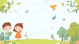 卡通植树节人物种树背景