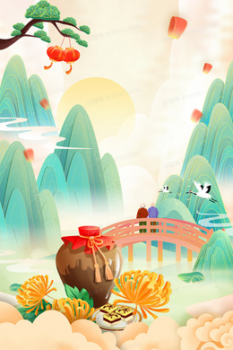 > 九九重阳节菊花酒菊花糕传统中国风节日背景