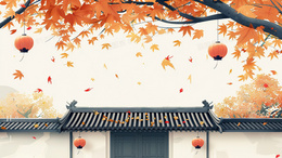 黄色可爱手绘卡通秋天植物落叶女孩创意背景