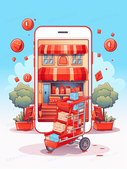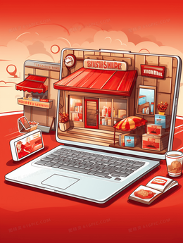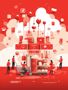 当前位置: 图精灵 > 背景图库 > 插画 > 红色喜庆场景电商线上年货节购物促销插画