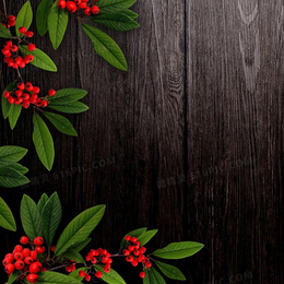 深色实木板与植物