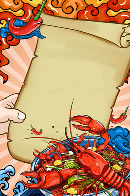 国潮插画手绘风格的小龙虾美食边框背景