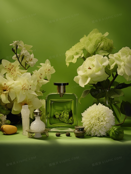 当前位置: 图精灵 > 背景图库 > 插画 > 绿色生机活力的香水瓶场景