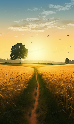 当前位置: 图精灵 > 背景图库 > 插画 > 唯美天空下的金色麦田小路