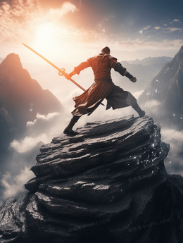 中国风山水画水墨武功武侠侠客背景