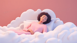 3D睡在白云上的女士插画