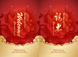 中式对折页红色商业邀请函婚礼贺卡海报背景