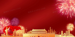 红色国庆节庆祝国庆卷轴打鼓喜庆背景