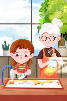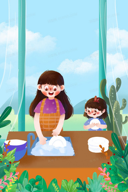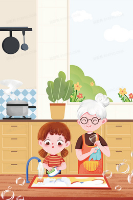 当前位置: 图精灵 > 背景图库 > 广告背景 > 家务洗碗帮助父母插画风背景