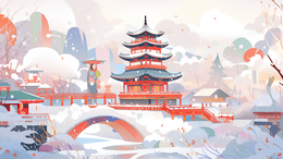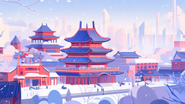 蓝色中国风水墨鎏金古典抽象晕染插画