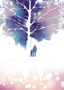 父子水彩树木海报背景